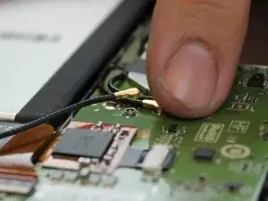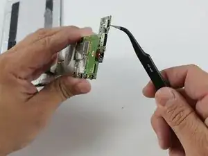 Используя загнутые пинцет, начните извлекать антенну из устройства.