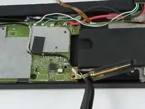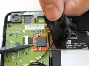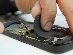 Медленно поднимите черный поролоновый кусок рядом с антенной Wi-Fi, чтобы открыть доступ к пленке аудиовхода.