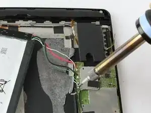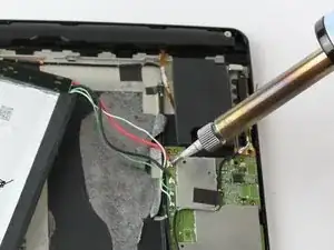 Если проводка вашего устройства не совпадает с изображениями, сделайте фотографию или запишите, какой провод какого цвета подсоединен к каждому контакту на материнской плате, прежде чем отпаивать их. (Неправильное подключение может вызвать короткое замыкание и окончательно вывести планшет из строя.)