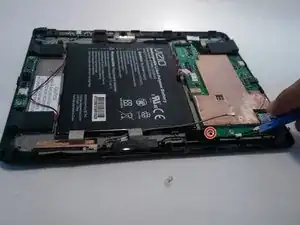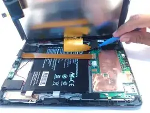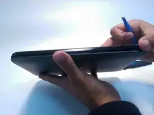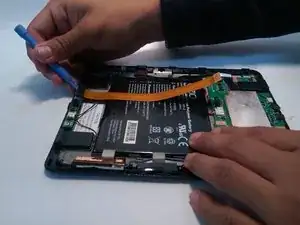 Начните с использования пластикового инструмента для открытия, чтобы снять заднюю крышку планшета.