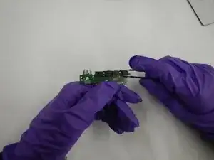 С помощью пинцета удалите черный компонент, прикрепленный к зеленому разъему зарядки.