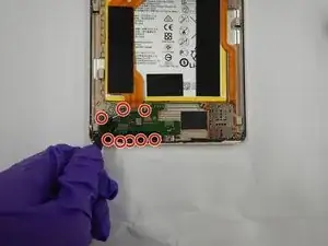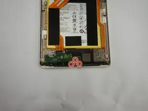 Используйте отвертку Phillips #00, чтобы удалить три винта длиной 3.0 мм из металлического корпуса разъема зарядки.