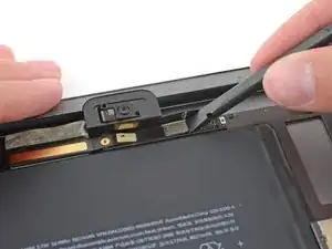 Не пытайтесь полностью снять ЖК‑дисплей. Он по‑прежнему подключён к iPad несколькими кабелями со стороны кнопки «Домой». Поднимайте только со стороны фронтальной камеры.