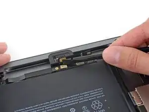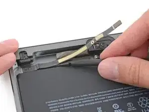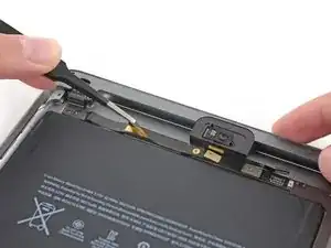 Подденьте ленту, покрывающую кабель разъёма наушников, в сторону верхней части iPad, чтобы освободить кабель для удаления.