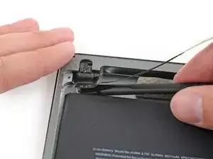 Поверните два медиатора на левых углах iPad, чтобы слегка приподнять дигитайзер, продолжая отделять оставшийся клей.