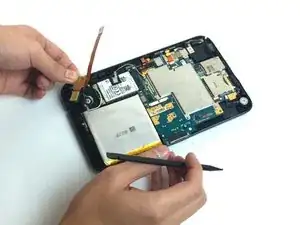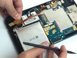 Используйте лопатку, чтобы пройти по краям устройства и отвёртнуть защёлки, фиксирующие дисплей в корпусе.