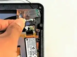 Поднимите экран (экранирующую панель) от устройства и отсоедините шлейф сканера отпечатка пальца от материнской платы.