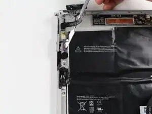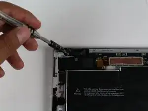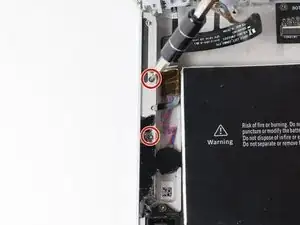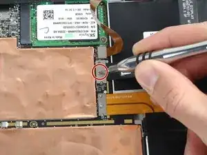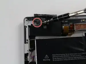 Удалите единственный винт Torx T3 длиной 4 мм, фиксирующий шлейф дисплея.