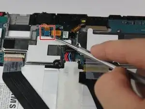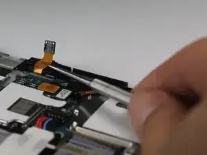 Для замены разъёма для наушников нужно выполнить несколько действий. Как обычно с планшетом, сначала необходимо снять заднюю панель и отключить батарею для вашей безопасности. Затем с помощью небольшой отвертки для электроники, предпочтительно Phillips #00, открутите 4 винта, крепящие держатель SIM-карты, который закрывает доступ к разъёму для наушников. После этого простое отсоединение разъёма по кабелю освободит гнездо наушников. Разъём приклеен к корпусу. Клей очень упорный, но в конце концов поддастся.