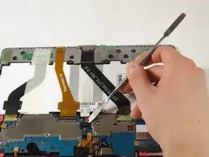 Поднимите чёрный кабельный разъём с помощью пластикового инструмента для открытия, чтобы отсоединить кабель от устройства.