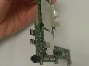 Поверните планшет так, чтобы материнская плата находилась в правом верхнем углу планшета и была самой крупной из зелёных плат.