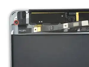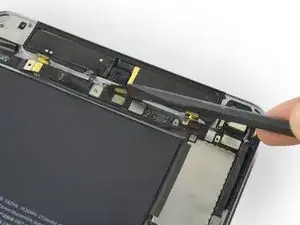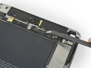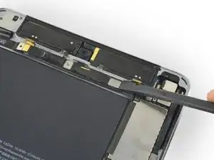 Поверните два медиатора у верхнего края iPad, чтобы разрушить оставшийся клей, удерживающий узел дисплея на месте.
