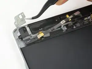 Используйте пинцет, чтобы отлепить петлевую ленту, приклеенную поверх скобы кабеля верхнего компонента.