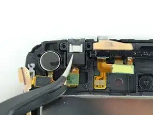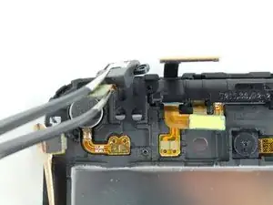 После удаления винтов аккуратно приподнимите разъём разъёма для наушников с помощью пинцета.