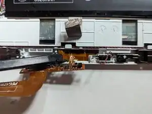 Гибкий кабель слабо приклеен к рамке дисплея, поэтому используйте лопаточку, чтобы отделить его.