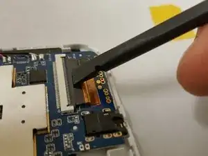 Найдите разъём соединительного шлейфа и отсоедините его, аккуратно потянув или используя лопатку.