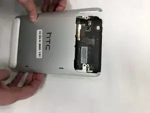 Снимите заднюю рамку полностью. Совет: приклейте кнопку громкости к рамке перед снятием, так как кнопка громкости выпадет.