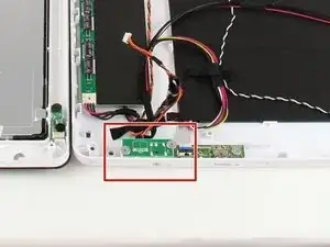 Найдите белый разъём, соединяющий заднюю панель с платой на задней стороне дисплея.