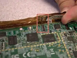 Отсоедините оранжевый ленточный кабель от материнской платы.
