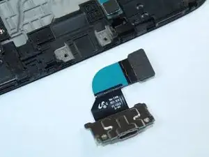 Открутите винты 2,9 мм с разъёма зарядки отвёрткой Phillips #000 и используйте пластиковую лопаточку, чтобы поддеть её снизу и извлечь компонент из устройства.