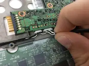 Снимите два винта Phillips #000 длиной 5 мм, удерживающие разъём зарядки.