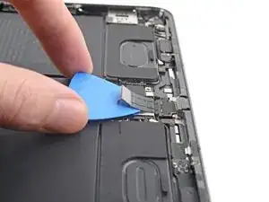 Вставьте медиатор для вскрытия между кабелем порта зарядки и платой логики.