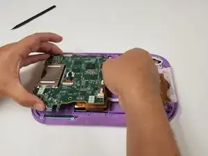 Снимите фиолетовый корпус, обнажив плату и аккумулятор.
