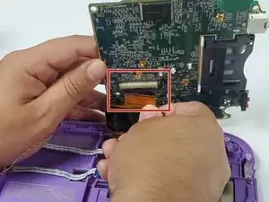 Поднимите плату, чтобы открыть четвёртый ленточный кабель под ней.