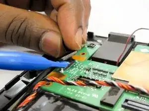 Снимите разъём на боковой части материнской платы с помощью инструмента для вскрытия.
