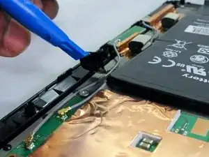 Не вставляйте инструмент для вскрытия слишком глубоко в планшет, так как это может повредить разъёмы, расположенные близко к краям крышки.