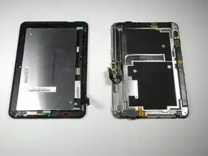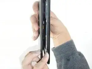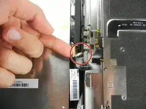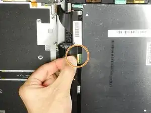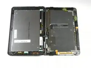 Будьте осторожны, чтобы не отделить заднюю крышку полностью. Существуют два тонких шлейфа, которые соединяют сборку дисплея с материнской платой.