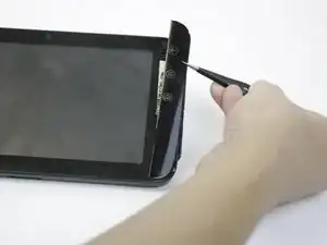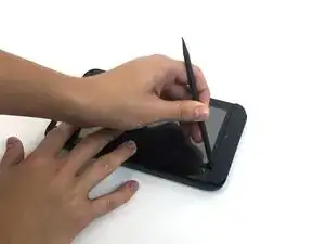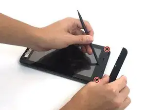 Используйте лопатку, чтобы пройти вдоль краев устройства и высвободить защелки, удерживающие дисплей на корпусе.