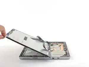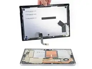Очень медленно приподнимите узел экрана от корпуса Surface. Если почувствуете сопротивление, остановитесь и проверьте, что весь клей отделён.
