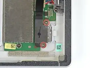 Используйте отвертку Torx T5, чтобы выкрутить два винта 3,1 мм, закрепляющие кардридер microSD.