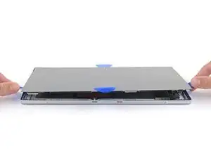 Проводите лопатку вдоль левого края Surface, чтобы разрезать клей экрана.