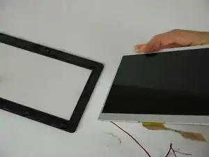 Осторожно отожмите скобы, удерживающие сенсор касания на ЖК-экране.