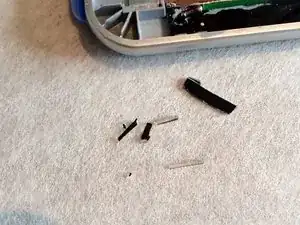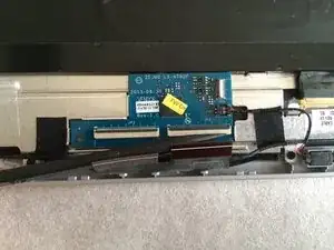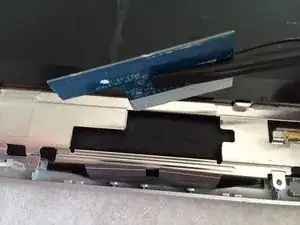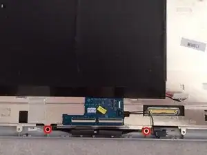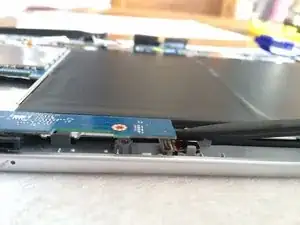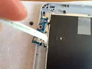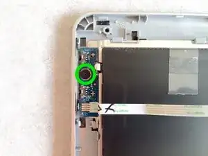 Уберите один винт Phillips 000, крепящий плату с кнопками громкости.