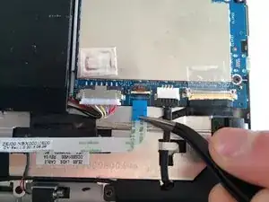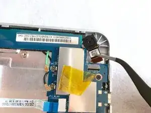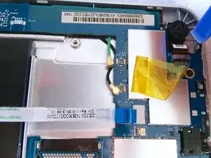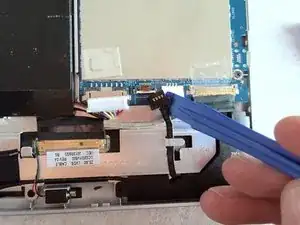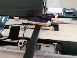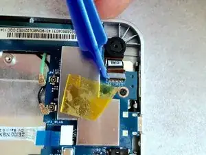Вставьте плоскую лопатку между материнской платой и гибким кабелем камеры.
