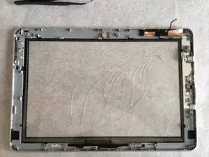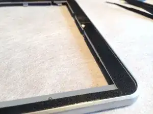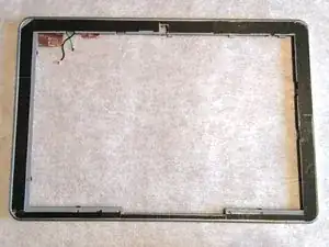 Сенсорный экран прочно приклеен к рамке вспененной двусторонней лентой.