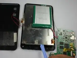 Удалите слой скотча, который крепит материнскую плату к дисплею и закрывает соединительные кабели.