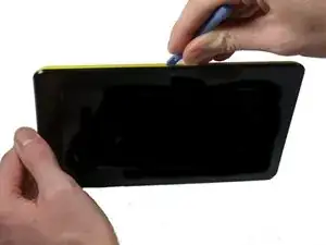 Нажимайте и проводите пластиковым инструментом по всем сторонам планшета, пока все стороны не откроются.