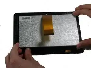 Отгибайте боковые части планшета, пока клипсы, удерживающие дисплей в корпусе экрана, не отсоединятся.