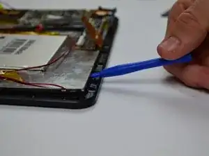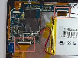 Динамики прикреплены к внутренней стороне задней крышки и соединены проводами с материнской платой планшета. Аккуратно отложите крышку, чтобы не оборвать провода.