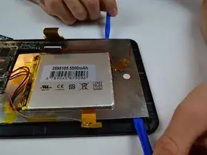 Дисплей — это серебристый блок, на котором расположены батарея и материнская плата. Он плотно прилегает к нижней стороне сенсорного экрана.