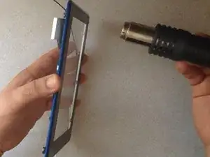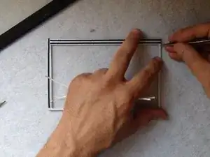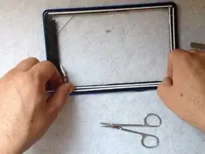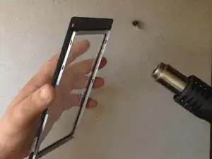 Снова используйте горячий воздух и пластиковые инструменты, чтобы отделить металлическую рамку держателя экрана.