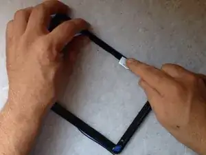 Удалите все скотчи и отсоедините шлейф сенсорного экрана...