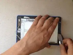 Используйте нож и пластиковый инструмент, чтобы отделить ЖК-дисплей.