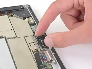 Поверните медиатор в направлении нижней части Surface, чтобы сдвинуть его под нижний край выреза для динамика.