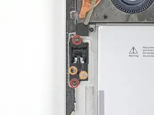 Используйте отвертку T5 Torx, чтобы удалить следующие четыре винта с каждого шарнира подставки, который вы заменяете: