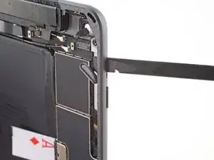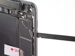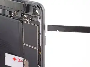 Обратите внимание, что у разъёма аккумулятора на логической плате есть консольные пружины, которые давят на контактные площадки аккумулятора. Поскольку и логическая плата, и аккумулятор приклеены, вам нужно будет подвести что-нибудь тонкое и гибкое между контактами, чтобы отключить аккумулятор.